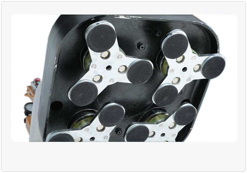 當打磨平整地面的時候,這兩種研磨機的區(qū)別并不是很大,但是當混凝土地面不平整時,這兩種機器的差別就會非常明顯,第一種由于是四個角支撐地面,所以當遇到不平整的地面時有一個腳會懸空,低洼的地方打磨不到,這種機器的優(yōu)點就是地面打磨的比較平整,但是可能會有低洼的地方會打磨不到。